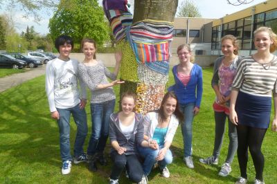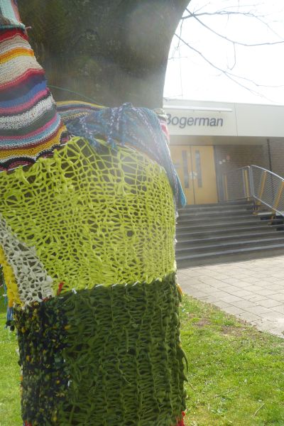 Wie’t nou over de Hemdyk komt, siet un antal bomen dy’t kleurech en fleurech inpakt binne met breiwerk. In de skoal staat selfs un fyts dy’t met breiwerk bekleedt is. De learlingen hewwe sich sponsòre laten per breide meter. Fandaach is ut projekt oulsloaten en wurdde un bedrach fan € 7281,76 overhandegd an Frysas! Hulde foar de learlingen en de òrganisasy!