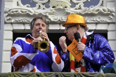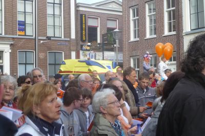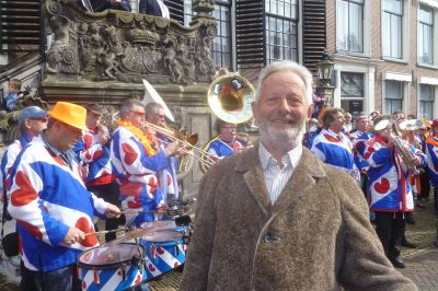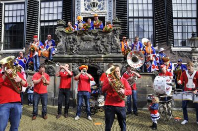 amper an te dúden Sneekgefoël at de Blauhúster Dakkapel op koaneginnedach ut reveille mòrrens om acht uur fanou de koepel fan de Groate Kerk klinke laat at múzikale mannen over de straatstienen fan de monumentale Marktstraat dweile ut toestroomde fòlk in ekstaze brengt met un poepke wònderskoane blaasmúzyk
