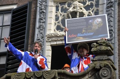 De aubade was wear ouwerwets goëd, un geweldech sfearfol gebeuren in ut hartsje fan de sonovergoaten stad. As dank foar al dy jaren begeleiding boad ut gemeentebestuur de Blauhúster Dakkappel un deur Paul en mij inlijst fers an: Adieu Blauhúster. Un groate ear om dat en públyk foarleze te maggen fanou ut bòrdes! Hierbij ut fers:
