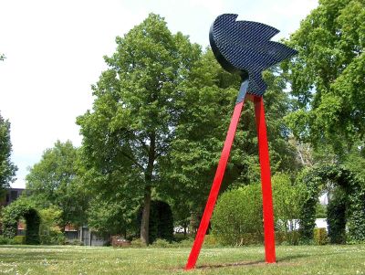 Galerie & Kunstuitleen Peter Bax met als exposanten Adri de Fluiter uit Sleen, exposerend met monumentale metalen objecten, Angèle Geuskens uit Menaam met een paauw van restmateriaal en Gert Jan Luimstra uit Scharnegoutum met stalen beelden.