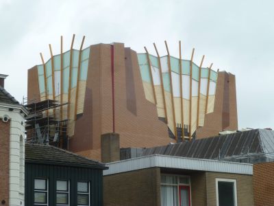 Der gaat gyn dach foarbij òf ik sien naar ut nieuwe teatergebou achter bij mij in de tún. En ik sien ut groeien en groeien. Der binne nou op’e kop ou nòch seuventech werjbare dagen en de bou leit op skema, su hoarde ik Ben van der Knaap, teaterdirekteur, fertellen an Sneek TV. End júly, krekt foar de boufakfakaansy sal ut teater boukundech opleverd wurde. Langsaam mar seker wurde de kontoeren fan ut futuristys bouwerk sichtber.