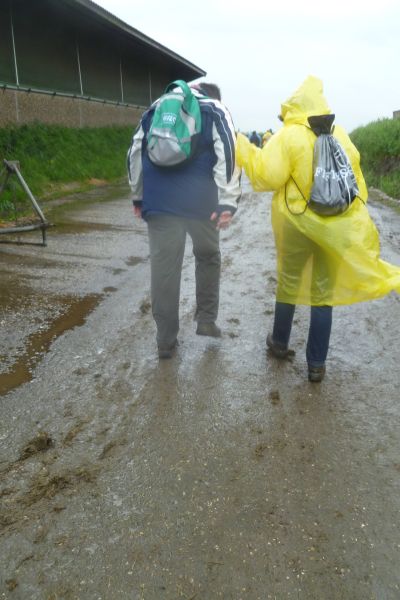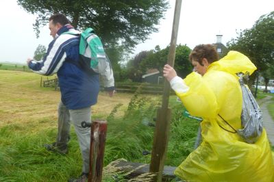 In Oasterwierrum, na 3.2 km krije we oans earste stempelstikkerke al. Ut regenwater komt dan nòch met bakken út de hemel. At we dan bij Boazum ut laan in gaan, sien en ondergaan we de gefòlgen. Ut is één groate blubberbende en ik hew even un déjà-vu gefoël fan de Abbegaaster Boereloop.