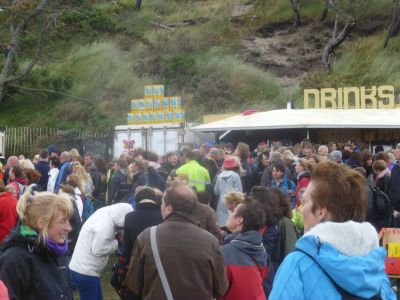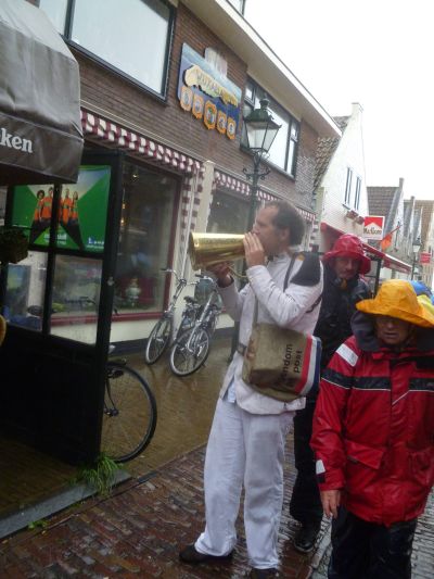Wat dat angaat had ik ut nyt beter treffe kannen: alle straatteateracts wurdde deur de wearsomstandechheden oulast! Hoe krije je ut foarmekaar, wille je de laaste Oeroldach fan 2012 metmake wurdt alles oulast! En tòch hew ik ut sfearke proeft. Hoe sal ut dan wel nyt weze at ut drooch wear is òf moaier nòch at de son skynt? Ik sal terecht komme in ut foarpòrtaal fan ut kulturele Walhalla! Wat un bekenden bin ik gister teugen komen. En al dy lui mar krekt doën òf se mij elk jaar wear ontmoete op ut eilaan. NEE!! Ut was myn EARSTE kear!!