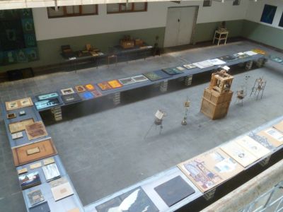 Fanmiddach hew ik mear as un uur rondlopen deur de ouwe drukkerij fan de firma Flach, dêr’t Gerrit Terpstra út Heech un poging deen het om un soart fan oversicht te maken fan un aventuurleke tòcht fan mear as 40 jaar. Ut begon al in de donkere kamer op de foto lito afdeling bij Flach. Dêr maakte de Gerrit as jonge in de loaze momenten de earste tekeningen dy’t al wat sien late fan wat bliëvend is in syn oevre: ‘ Het verstrijken van de tijd en de gevolgen daarvan zijn zichtbaar in vele werken die volgen. De ‘ levende dood ’, zoals de tekening inderdtijd genoemd is ook een teken van hoop en verwachting. Het bestaan zichtbaar in een onvoltooide schets’ ( sitaat út de fraaie tentoanstellingsgids “ Steanbestean ”– in skets 1970 -2012 ‘ ). Sien de bovenste foto!