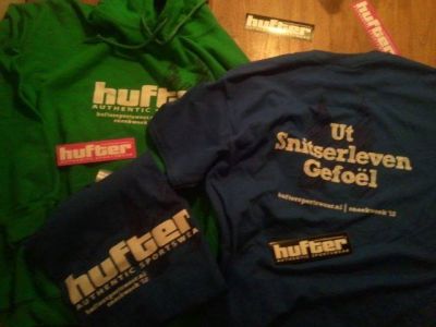 Met de Sneekweek T-shirts en de hooded sweaters loopt ut ondertussen as un tierelier. Wie’t nòch su’n shirt hewwe wil, doët der goëd an kontakt met de Hufters te soeken en dat kan ut bêst deur even naar hun site te googlen: http://www.huftersportswear.nl