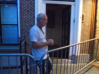 Un moai kiekje fan achterbuurman Wiebe van S. Hij is immer kalm, ok tidens de Sneekweek. Hij houdt fanachter de stekken dy't syn hús beskerme de saak in de gaten.