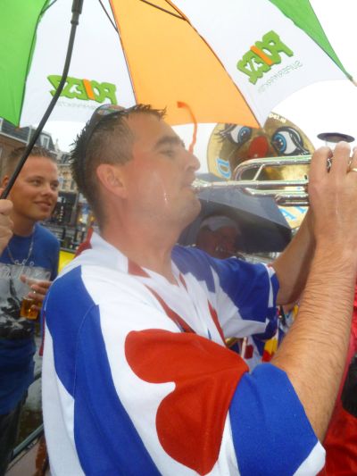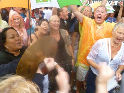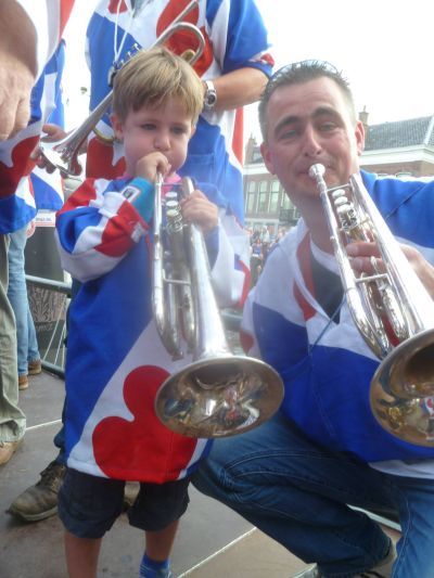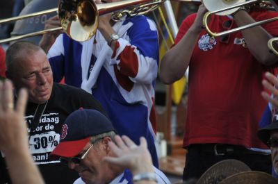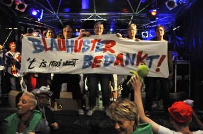 Echte Blauhúster Dakkapel-fans brenge hun dank over an ut weareldberoemde dweilòrkest. Let ok even op de man met de cowboy hoëd, oans aller Yke S.