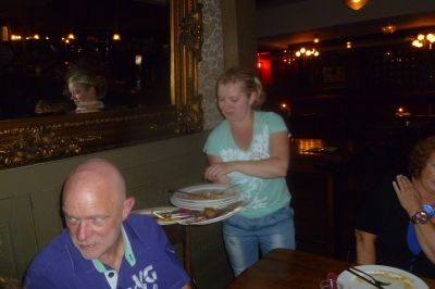 Wat dan ok wear un fenomeen is, is de afrekening. Gyn gesijk over dy betaalt sufeul en dy kan mut sufeul dokke, nee de man/frou 25 euro! Inklusyf konsumpsy’s! Even docht ut geselskap dat ut un opname fan Bananesplit betrof, mar niks was minder waar. Patron Bas Hollenberg kwam hoochstpersoanlek nòch even afskeid fan syn gasten nimmen met un lach fan oar tòt oar. Ut naam fan al dy blije gasten hartstikkene bedankt Bas! En met hem noem en roem ik ok alle Sneker horeka-ondernimmers dy’t sich fan hun beste kant sien late in dizze dagen. Grandioas!