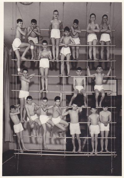 Wat un golf fan entûsiasme! Nederlaan hunkert blykber naar spòrtyf súkses na alle ellende fan ut oulopen EK. Of sú ut der met te maken hewwe dat un heel soad Nederlanners in hun froegste jeugd op gymnastyk sitten hewwe? Ja, want su noemden wij dat in Sneek in de sesteger jaren fan de foarege eeuw, fan turnen had nòch noait un mins hoard. Ik hew ok op gym sitten, úteraard bij ADVENDO. We treenden in de gymsaal fan de ouwe Rehoboth-Ulo. In myn foto-album fon ik nòch un fraaie swartwit foto út dy tiid. Met mekaar in de bloate burst in su’n slingerend wandrekje. Ik staan onderan sesde fan links. Foetbalmaat Tjalling Tjalsma, de Man fan Staal, is fòlgens mij derde fan links.