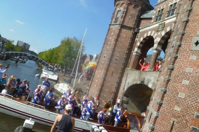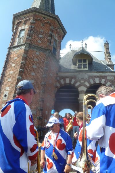 Sukrekt teruch fan de Waterpoort. Dêr op ut symboal fan de stad staat de Putkapel te speulen om de Blauhúster Dakkapel múzikale útgeleide te doën richting ut Ouwe Vat.