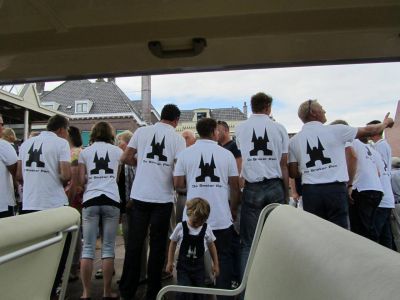 Echte helden hale je in! Un grandioase intòcht op un sonovergoaten Hardseildach! Ut overkwam de Blauhúster Dakkapel gistermiddach. De mannen wisten dat se om 16.30 uur bij de Waterpoort ferwacht wurdden, mar dat se dêrna an board stappe súden fan De nieuwe liefde fan Frans Huitema was tòch wel un ferrassing.