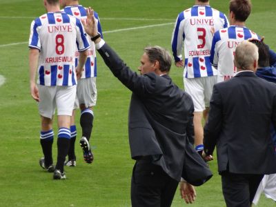 Marco van Bassen is un passyfol coach en loopt na afloop fan de wedstryd ut earerondsje met.