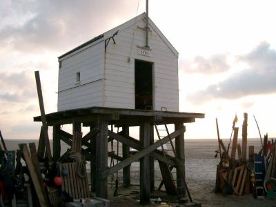 Op bovenstaande foto, dy't ik foarge week in ut Reddingshúske op Flylaan skoat, un anspoëld gebit fan? Ja fan wie? Eén dy't seesiek weest het, ferfòlgens spuie moest as un blauwe reiger en dêrbij ut gebit ferloar? Wie't ut gebit mient te herkennen, kan altyd maile! Ik geef ut wel deur.