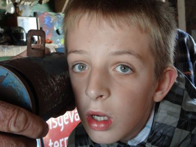 Hij liet mij gister al wete dat hij niks fan dy groatdoënerij hewwe mut en dat hij nyt fan plan is om in ut ferfòlch te pas en te onpas met drs. te tekenen. Wat dat angaat is hij un bitsje ingetogener as syn ouwe hear, en dy beskeidenheid fan hem komt foart út de genen fan syn mem! Mar ik kan ut fanself nyt nalate om su groats as un kyp met 4 poaten bovenstaande foto fan hem te plaatsen.
