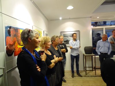 Eén fan de kunstenaar, Rita Vjodorowa, fertelde mij un opfallend ferhaal over ut ontstaan fan har werk foar dizze tentoanstelling. ‘Ik had het werk binnen twee dagen klaar, terwijl ik anders soms weken bezig ben…’ Wat un herkenning foar mij! Ok ik hew de fersen dy’t ik spesjaal foar dizze eksposisy skreven hew, binnen no time op papier setten. Binnen 14 dagen fersen skriëve is foar myn doën ok únyk! Blykber klopt ut dat der op un gegeven moment inderdaad ‘ yts in de lucht sit ’, su as ik fanmiddach hoarde.
