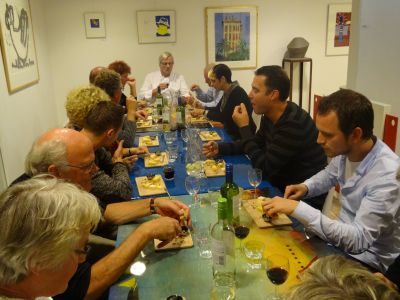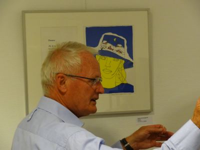 Un seldsem rike avend had! Sukrekt teruch fan un besoek an de oversichtstentoanstelling fan ut werk fan Ab Roosenstein ( ' Appo ' )in de daansskoal fan Jolanda & Rudolf Vergonet. Foarege week is dizze ekspo opend, mar deur ferbliëf in Portugal nyt in de gelegenheid weest om dêrbij anwezech te wezen. Dat is dus fanavend mear as goëd maakt deur un wel hele bysondere rondleiding onder leiding fan de dry dochters fan Roosenstein. Wat un warmte, wat un entûsiasme mar bovenal wat un liefde foar ut werk fan hun overleden fader strale dizze Sneker frouwen út. Ut werk fan Roosenstein is overweldegend, nyt allienech in antal, mar ok in kwaliteit. Ut is werklek nyt te loven hoe aktyf dizze man weest het. En dan de ferhalen en anekdoates over Roosenstein, je kanne der un boek over skriëve. Ut mach nyt su weze dat de ferhalen fan dizze weareldberoemde Sneker ( mar wie wete dat hij de ontwerper is fan ut Gaastra logo en ut bekende 7 Up merk??! ) ferloaren gaan. Gelukkech hewwe GPTV en SneekTV de ferhalen fan Roosenstein syn dòchters op baan staan. Waardefol! Su'n útgebreide tentoanstelling dy't mar un week te besichtigen falt, ut is súver te bizar foar woarden. Der mutte nòch feul mear werken fan Roosenstein in omloop weze. Ut sú moai weze dat alles dokumenteard wurdt!