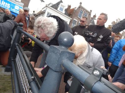 Toen ik even later foar ut Teater langs liep sach ik Harm & Frouk. Beide minsen dy’t ogenskynlek altyd un goëd sin hewwe. Wat dus wel nyt waar weze sal. Even praatsje maakt met ut duo en Harm nòch even om info over één fan de Sneker stegen fraagd. Op ut Oasterdyk is un steech sonder naam, Harm wist futdaleks welke: ‘ De Spokesteech, dy kwam út op’e nieuwbuurt en Haga had dêr de drabbelkoekesaak! Wêrom’t se dizze stege de Spokesteech noemden weet ik ok nyt, hij kwam út in un echte fòlksbuurt, de Nieuwbuurt. Miskyn het dat der wat met te maken.’