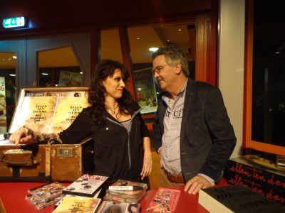 Ellen ten Damme tegare met Arriva-baas Anne Hettinga dy't beloofde dat de trein met de afbeelding fan Ellen der op, ok un kear in oans omgeving te bewonderen weze sal!