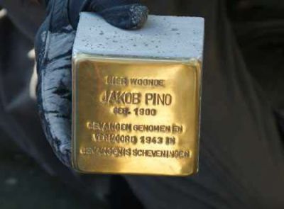 in ut fan gòdferlaten Auschwitz liep ut spoar fan dizze Pino’s doad gyn teken fan leven mear, laat staan hun naam útbeiteld in stien