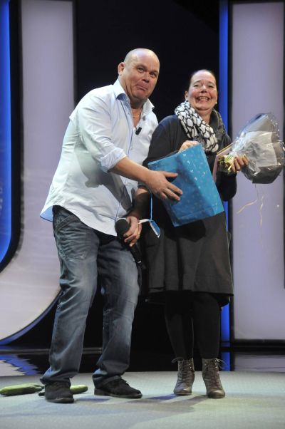 Na afloop van de uitverkochte voorstelling ‘Poephoofd’ van Paul de Leeuw vanavond in Theater Sneek, stond één van de bezoekers een verrassing te wachten. Terwijl het applaus voor de voorstelling nog nagalmde, vroeg De Leeuw om nog een moment aandacht. Na uitgebreid het theater te complimenteren op een wijze die De Leeuw eigen is: “jullie zien er niet uit maar de zaal is prachtig”, liet hij weten dat de dertigduizendste bezoeker zich in de zaal bevond.
