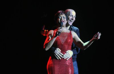 Omer Kaya, tegare met Freark Smink na afloop fan de foarstelling. Bewondering bij Kaya en opluchting bij Smink, na wear un slaagd optreden.