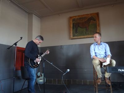 Dichter Han Bosma en gitarist Sietze Wierda sinds foarech jaar un duo dy’t op hast andoënleke wize ut públyk ferovert passe perfekt thús in un setting su as fanmiddach! Bosma stroait wear met fraaie poëtise regels: ‘ In die nacht werden keurige dames gek…’ en ‘ Vertouw mij je hart toe…’