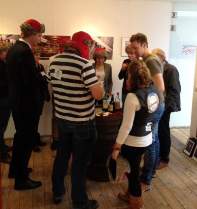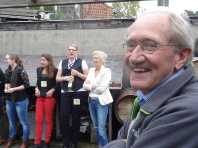 Ook galerie eigenaren Peter en Redmer Bax glunderen. ‘Zo’n volle galerie is een prachtige beloning voor de samenwerking met Weduwe Joustra. Bij ieder werk hoort een verhaal en dat vertellen wij er graag aan alle bezoekers erbij, uiteraard onder het genot van een glaasje Beerenburg.’ Tijdens de opening werd door Peter Bax het allerlaatste werk in ontvangst genomen, een prachtig plakboek vol historie van de Weduwe. Foto’s, kranten, knipsel verzamelt door de 74-jarige Sneker Roel Osinga. Glimlachend vertelt hij dat hij het niet meer mag drinken, maar het zo’n mooi bedrijf vindt. Ondertussen springt de 6e generaties op dé Weduwe Joustra fiets, de hoofdprijs voor het winnend werk.