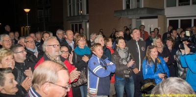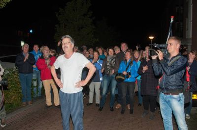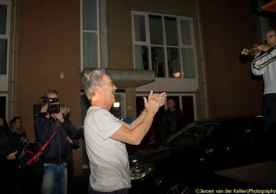 Jeuminikkus, niks in de gaten mar dêr stonnen mear as 100 frynden, familyleden, Sneekologen en allemaal mênsen met un gouden hart. De matty’s út de Sneker paparazziweareld heftech an ut foto-skiëten, kamera’s fan Friesland Actueel en GPTV draaiden. Radio Markant met de mikrofoan in de anslach.