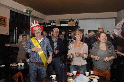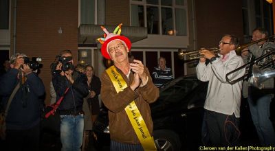 En ik? Nòch altyd op bloate foeten en un slobberde-slob-streepkes-pyama-broek om de sestech jarege billen anskoude dizze giga-happening. In optòcht naar de Koperen Kees, dêr’t un ryk ontbijtbuffet klaar ston.