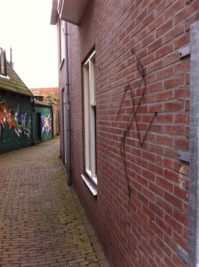 ‘ Zum kotsen ’, sêge de Dútsers dan. En inderdaad ik kan hier ok wel fan spuie toen ik dizze mislekmakende graffity op un muur in de binnenstad fan Sneek sach. De swastika ( foar un soad minsen symboal fan nazi-dútslaan en ekstreem rechts ) is ut oulopen weekend anbrocht.