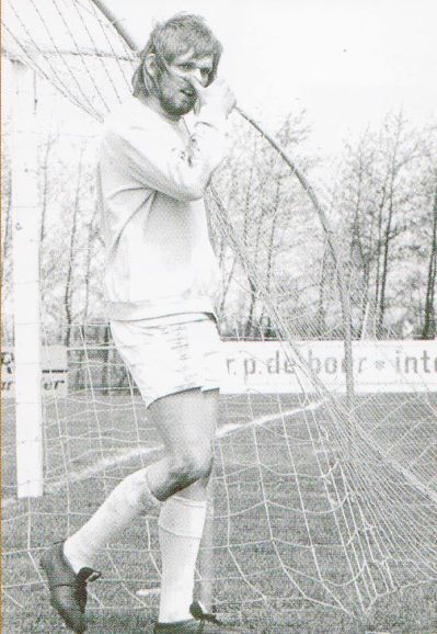 Chris de Wagt nimt de felisitasy's in ontfangst na syn wonderskoane doelpunt út un frije trap