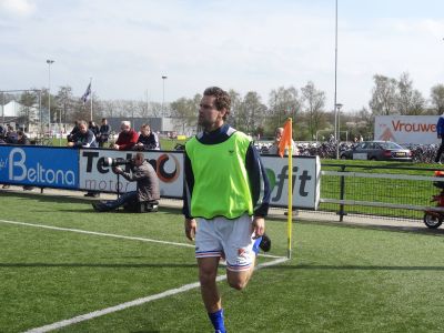 Sandor van der Heide, bezech met de warming up flak foar syn infalbeurt