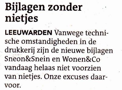 Wat ik ok un bitsje apart fyn is dat bij de advertênsy foar de Open Dag fan saterdach anstaande un art pression opnomen is sonder Teater Sneek. Fòlgens mij hoeve je je nyt te skamen foar dat stukje moderne arsjitektuur fan Sneek. Al weet ik om de bliksem wel dat de meningen hierover ferdeeld binne. Ut sumar fut late fyn ik op syn minst opfallend. Gelukkech staat op de site fan de Kastanjehof wel un echte foto met de teatertoren op’e achtergroan.