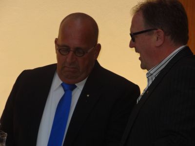 Wethouwer Wigle Sinnema, links naast Liwwarder wethouwer Andries Ekhart: út ut kolleezje?