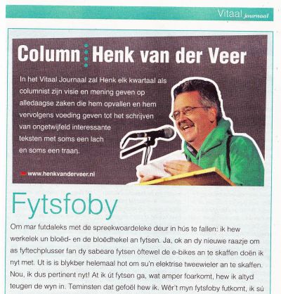 Wie't de stikkers op'e brievebus plakt het fan gyn reklamefolders & su, dy ontfangt ut Vitaal Journaal ok nyt. Dan hewwe se fette pech, want dan kanne se myn kollum ok nyt leze! De kollum staat der mar wear fraai opmaakt in! Dêr houwe skriëvers en kollumnisten fan, moai opmaakte stukjes. Maakt ut leven gewoan un bitsje angenamer!
