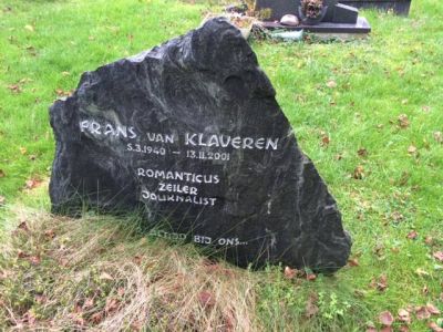 Op de Gaasterlaantrip ok bij ut wonderskoane kerkhof fan Rúgehúzen weest. Wat un frede is hier op su'n grize herstmiddach in òktober. Bij toefal kwam ik ok ut graf teugen fan Frans van Klaveren. Ut was un bekende sjoernalist. Moai grafopskrift!