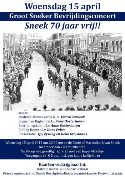 De kaartferkoop foar ut Groot Sneker Bevrijdingsconcert op 15 april a.s. in de Groate - òf Martinikerk ferloopt foarspoedech. Da's moai! Ok krije wij as òrganisasy ferhalen en anekdoates over dy memorabele befrijdingsdach binnen. Ut aflopen weekend ok ut fòlgende bysondere bericht: