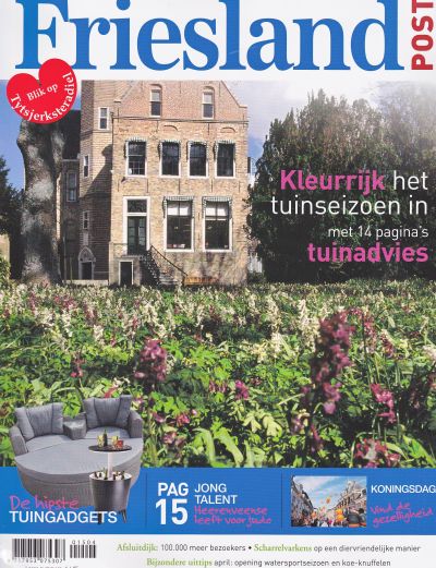 De post kwam fanmòrren met twee moaie kadoatsjes. Ut aprilnummer fan de Friesland Post, dat der fris & fleurech útsiet. Myn bijdrage over boeken in Fryslaan, diskear over ut boek Het Veenparadijs, staat su as gewoanlek wear moai opmaakt in ut blad.