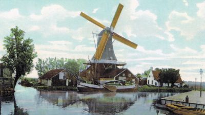 Molen: De Ooster, deze stond op de hoek van het Eiland, tegenover de Oosterkade nu de Pampuskade.