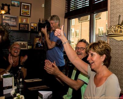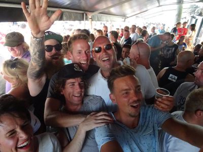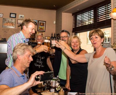Dit jaar helemaal foar Sonja, dy’t na seuven maanden Down Under wear boven op de tafel ston. Ut fotomoment met de Amsterdammers en Olof van der Meulen dy’t alle kearen wear met ‘ Ha die Ron Zwerver ’ de noadege hugs krijt. Fokke Dam met syn Sneekweeksoan Flip. Ut hoart der allemaal bij.