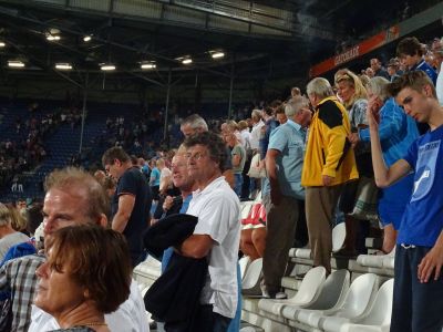 Om precies 22.53 uur staakte de scheidsrechter van dienst, W.H. Bronsvoort uit Batmen, vanavond de KNVB-bekerwedstrijd O.N.S. Boso Sneek – VC Vlissingen definitief. Bijna drie kwartier ervoor werd de wedstrijd in de eerste ronde van de KNVB-beker al stilgelegd wegens zwaar onweer dat op dat moment over het Zuidersportpark trok. Dat de wedstrijd alsnog definitief werd afgelast had alles te maken met de erbarmelijke toestand van het kunststof grasveld: een groot bassin! Een terechte beslissing van de scheidrechter Bronsvoort. Hij kon ook niet anders.
