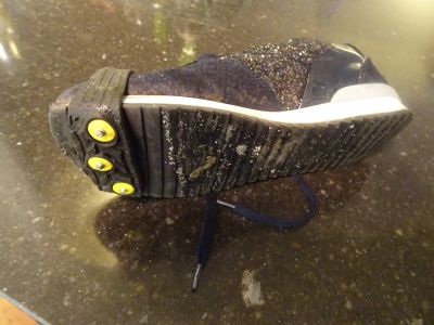 Tòt beslút fan al dit winternieuws. J. kwam thús met un sear bysonder hulpmiddel onder har skoënen. Utglide? Nergens mear last fan met dizze spikes, metalen pròppen!