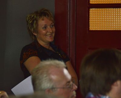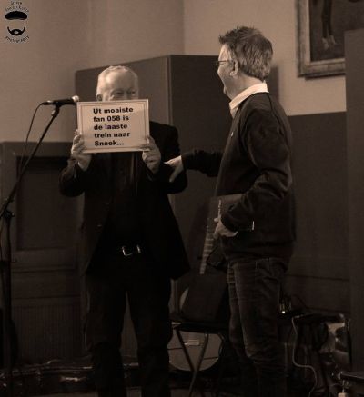 En dan was der Willem Ozinga, al òf nyt met de letter z òf s in de naam. “Ik bin gjin dichter, ik bin hjir in frjemde ein yn it bit!” Ferfòlgens wú de oud-Jutryper nyt op ut poadium staan. Hij wú wel fertelle hoe’t hij fan syn kwaal afkomen was. “As jonkje stammere ik nòch al. Doe’t ik foar it earst op skoalle kaam sei master letter tsjin ús heit en dy: “Dy jonge fan jim praat as in kreupel hynder!” Deur feul gedichten te lezen was hij dy kwaal overgroeid. Un moai ferhaal!