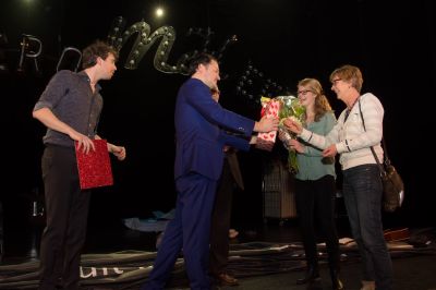 Ut had trouwens nyt feul skeeld òf de hele avend was nyt deurgaan. De laatste poëzy-winnaar fan de belangrykste Fryske literêre onderskeiding, de Gysbert Japikspries, Jacobus Quiryn Smink raakte onderwech fanút Eindhoven met syn auto in de Noardoastpòlder op’e kòp in de sloat.