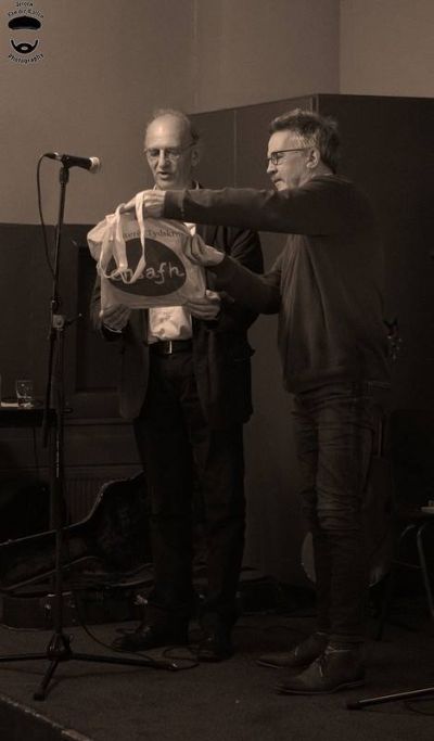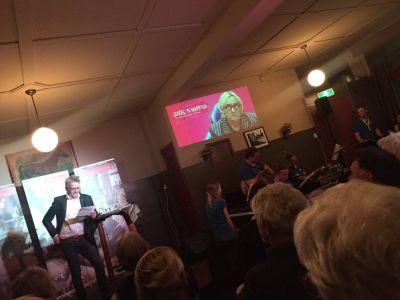 Fotograaf Jeroen van der Kallen as gisteravend anwezech met kamera en maakte un únike opname fan de foardracht fan de Friese dichter Piter Yedema. Hoar en húver fynproevers. Su moai!