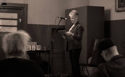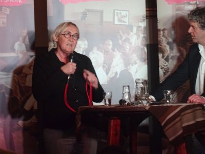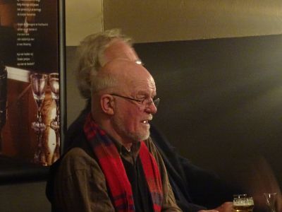En de fòlgende dichter, Anske Smit, blykber ok nyt. Hij priemde met syn finger richting De Vries en spraak over de Liefde. Na afloop hew ik Gerrit de Vries syn bijdrage fraagd om ut thús nòch us rustech na te lezen. Hij trilde toen behoarlek sach ik wel.
