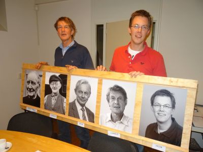 Op'e foargroan dichter Piter Yedema, met achter hem nyt goëd sichtbaar Pier Boorsma: "Waardeloas..."