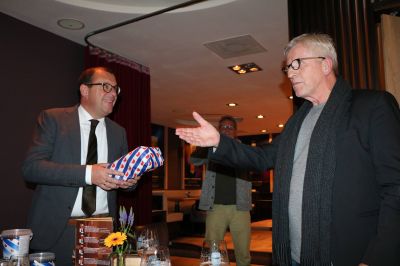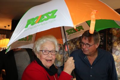 En dêr hew ik un heel pakje drumsticks metkregen. Drumsticks dy’t je opete kanne en met ut overhandegen fan dizze drumsticks an Hille Stellingwerf ferklaar ik de Popkelder fan Sneek offisjeel foar opend! En nou hoop ik mar datstou gyn fegetariër bist, as ut wel su is dan geeftst de drumsticks mar deur, an de wethouwer befoarbeld!