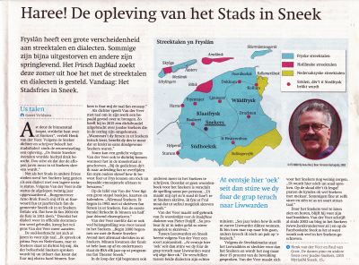 In de krant wear allemaal moaie minsen dy't we interviewe mochten. Diskear ok twee bijlages, eentsje fan de júbilearende SMHC dy't har 90 jarech bestaan fiert en de foetbalbijlage.
