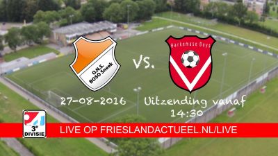 De voetbalwedstrijd ONS Boso Sneek tegen Harkemase Boys wordt morgen live uitgezonden door het online mediaplatform Friesland Actueel - http://www.frieslandactueel.nl